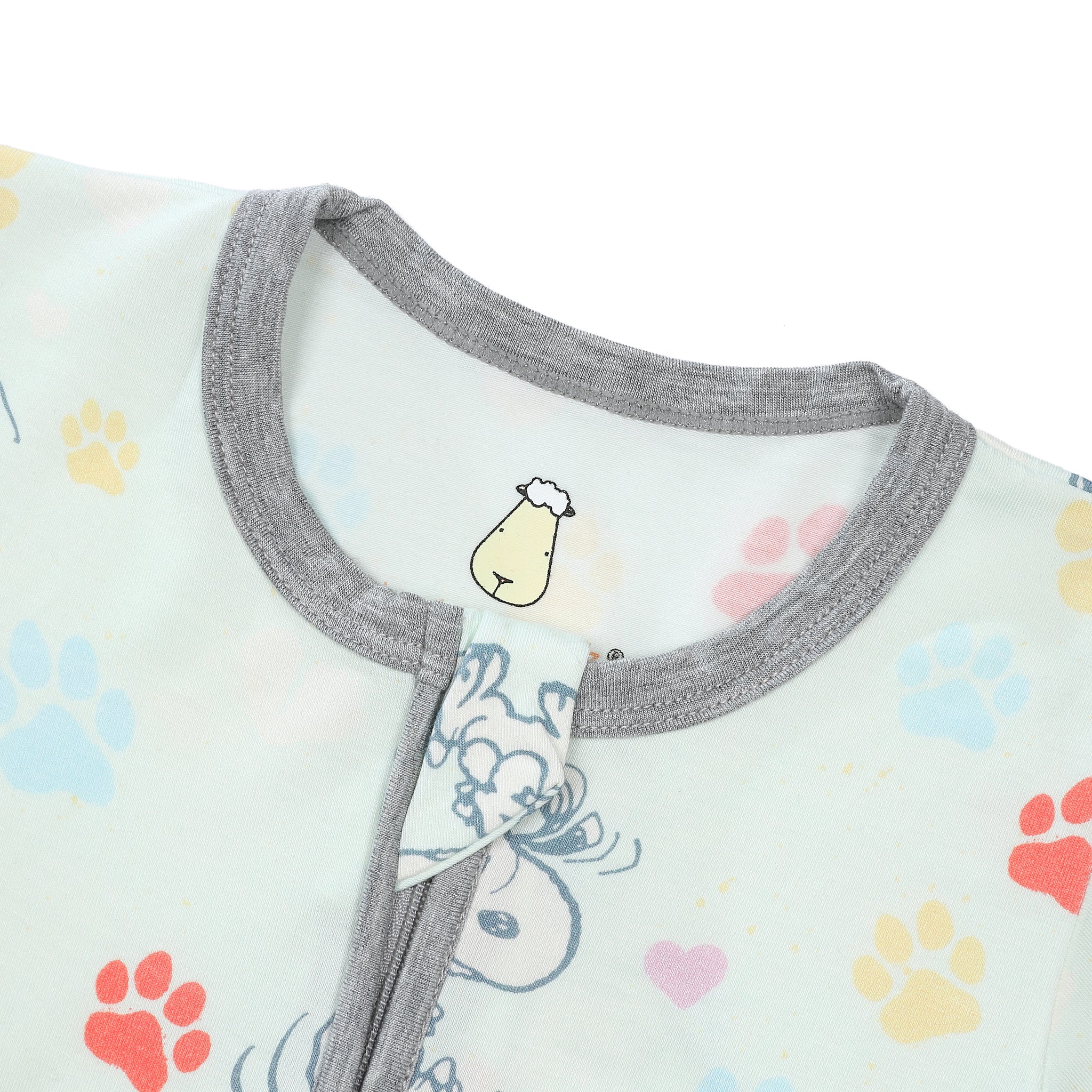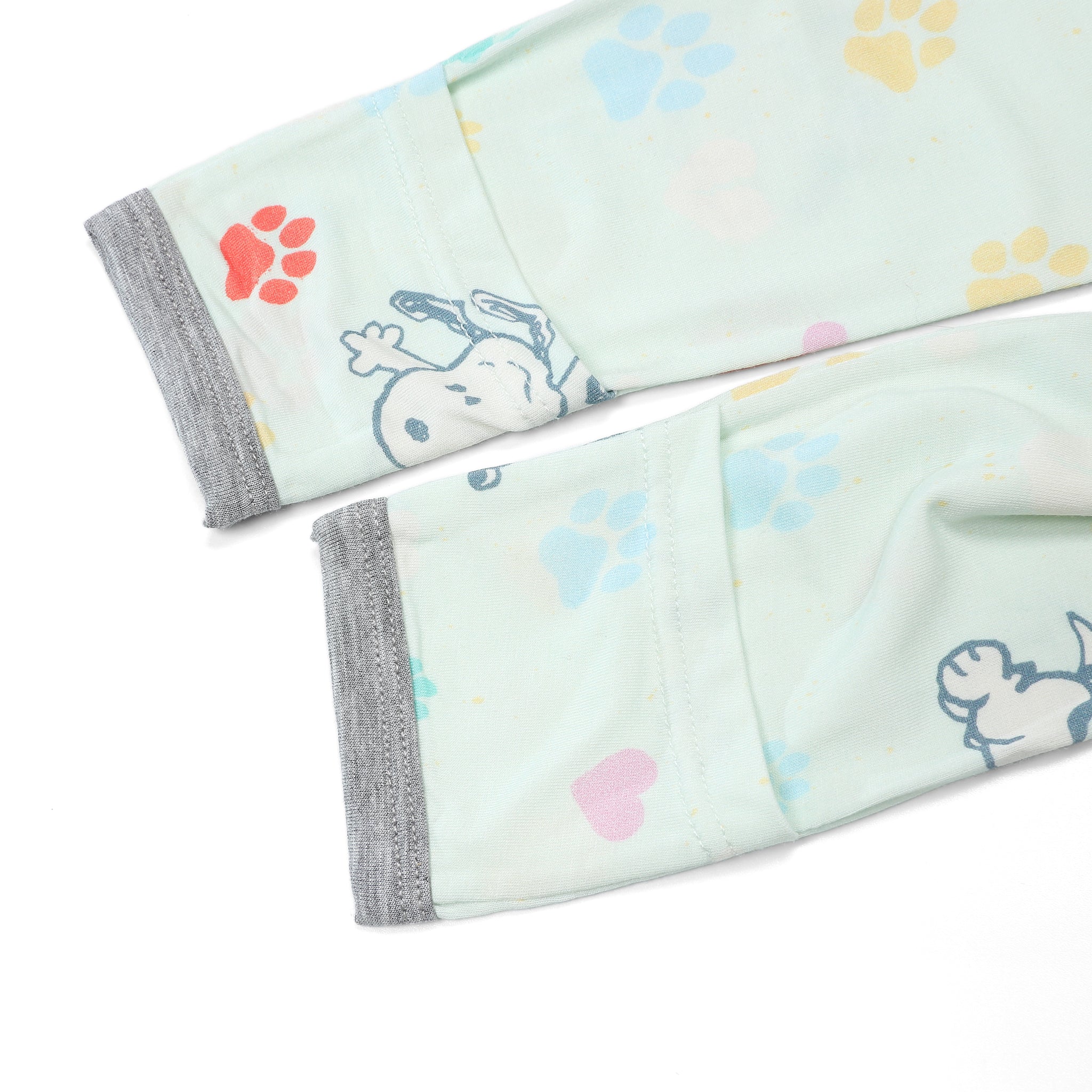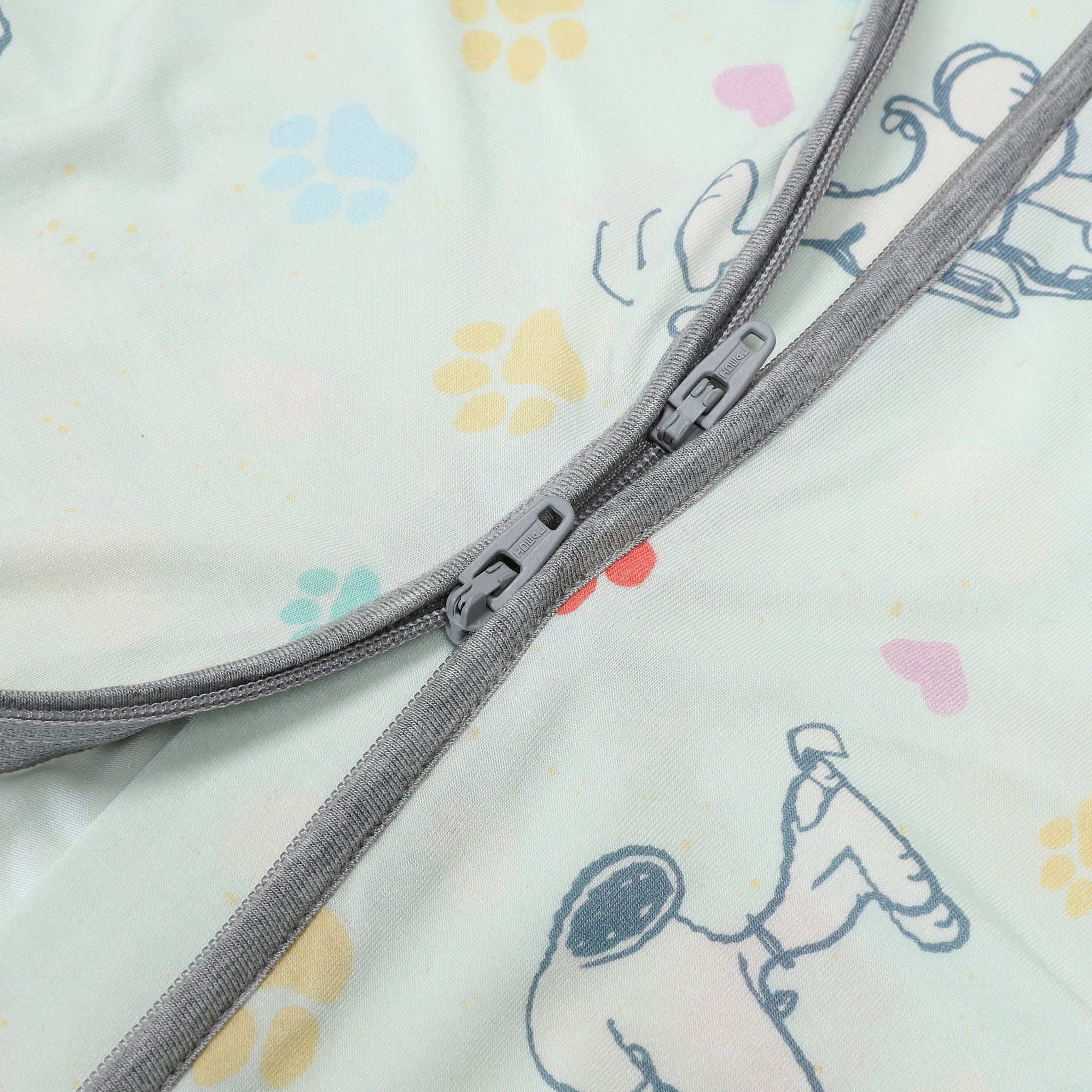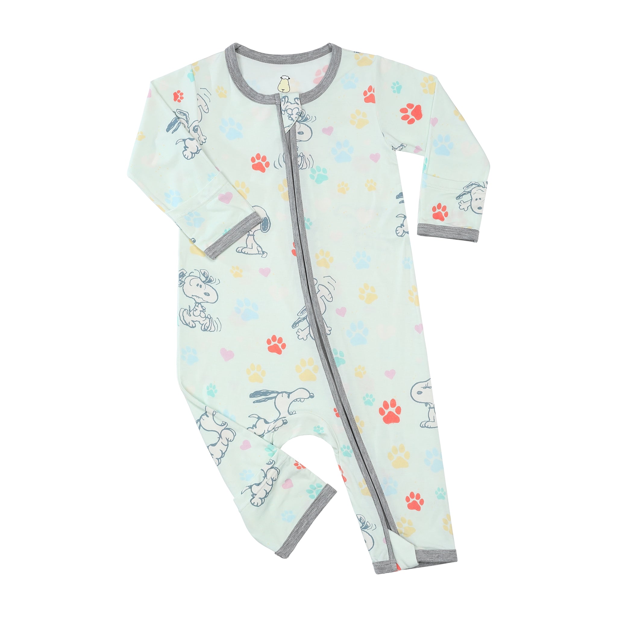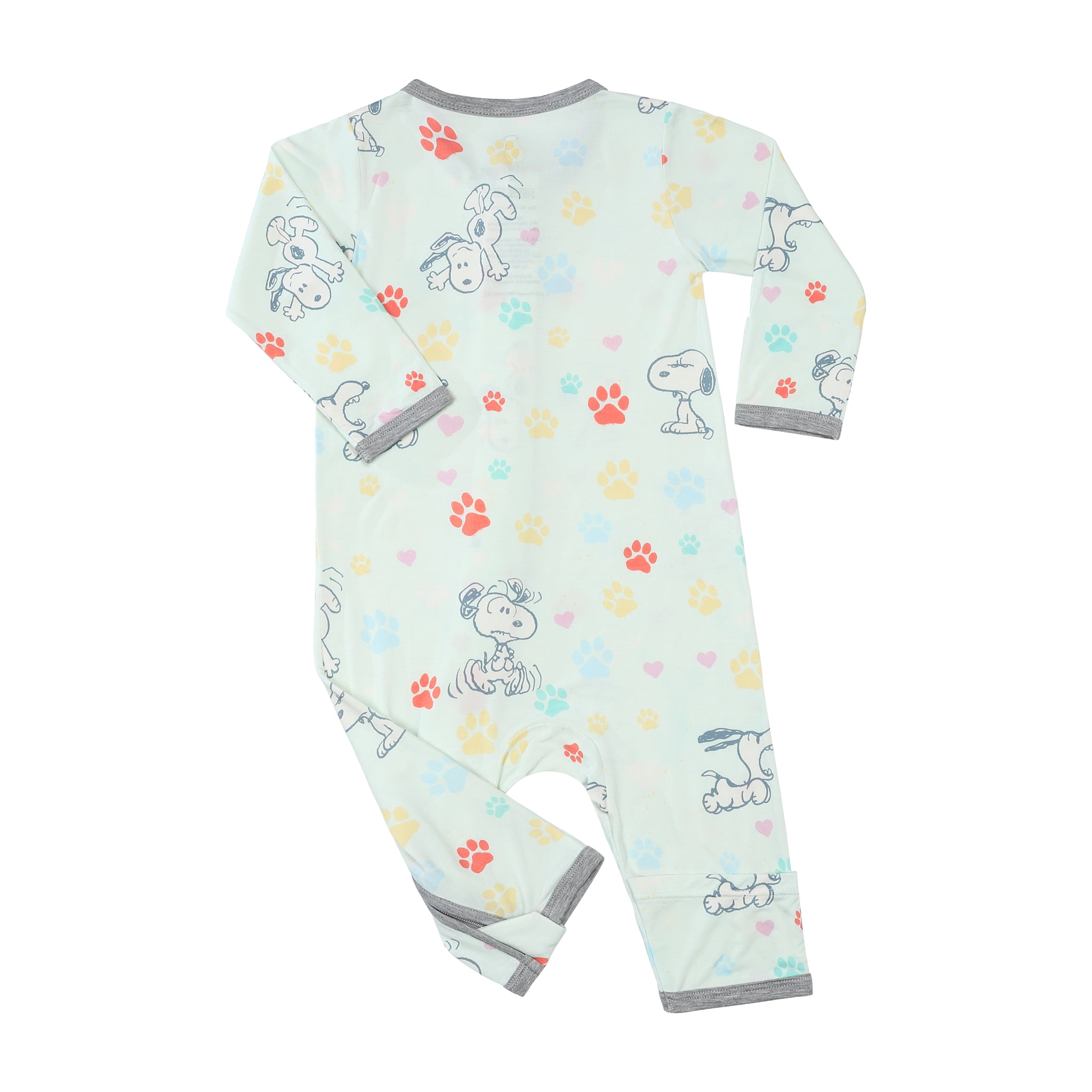 史努比雙拉鍊長袖連身衣(彩色腳印綠底)
