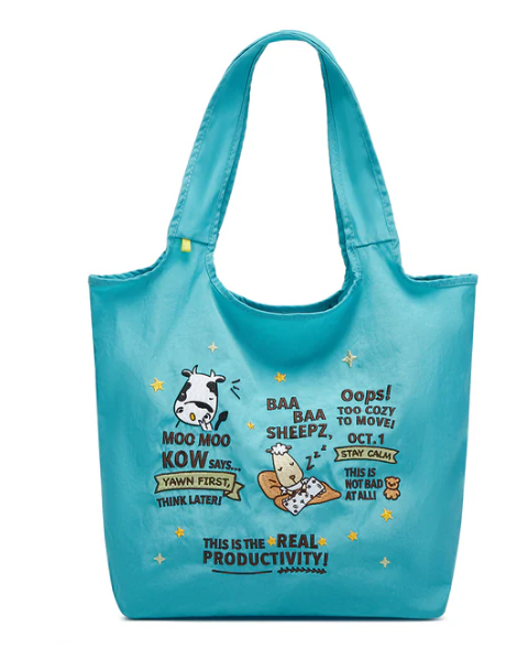 手提刺繡包(睡覺藍綠色)